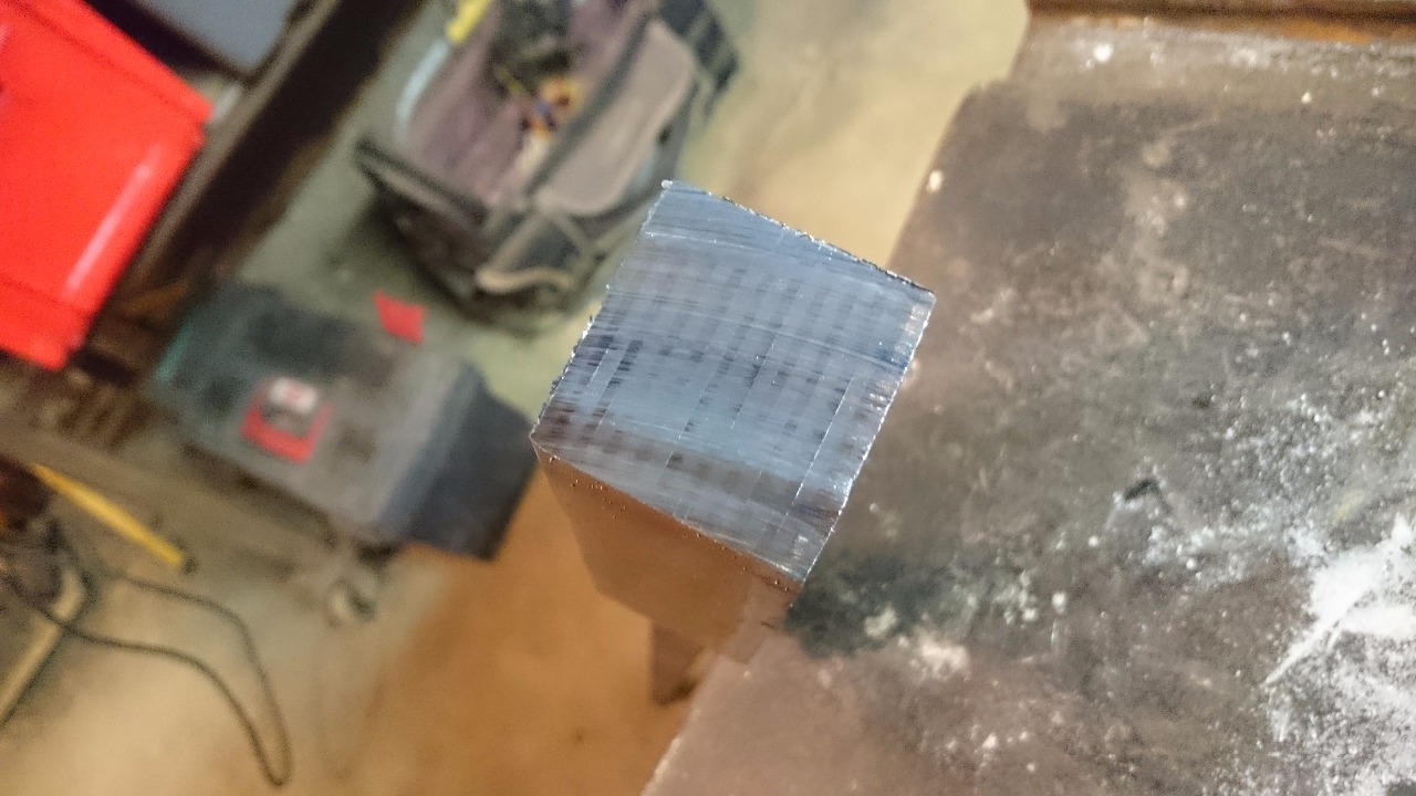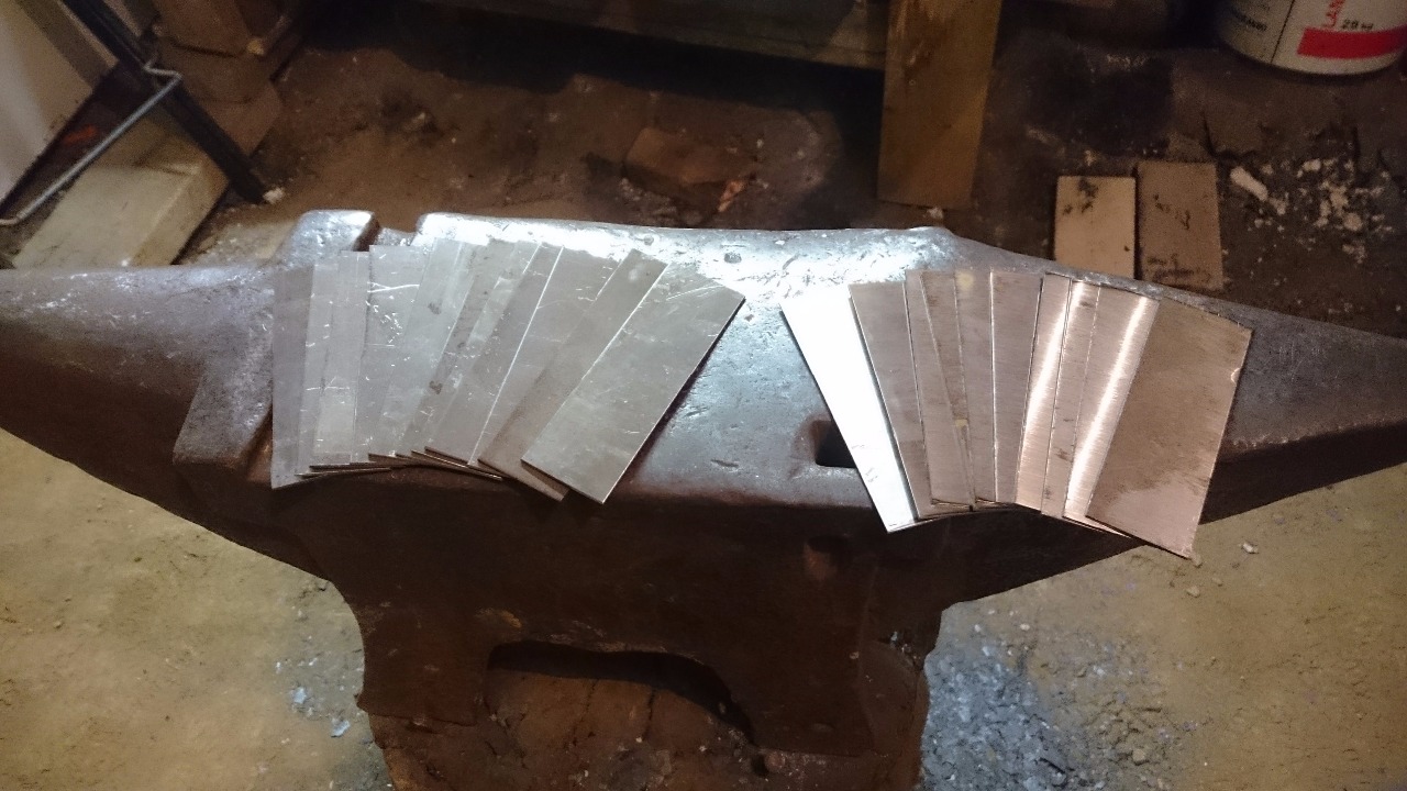 Comme mon acier est beaucoup plus fin (2 mm), cette fois je pars sur 21 couches en alternance de 15N20 et de MCV8.