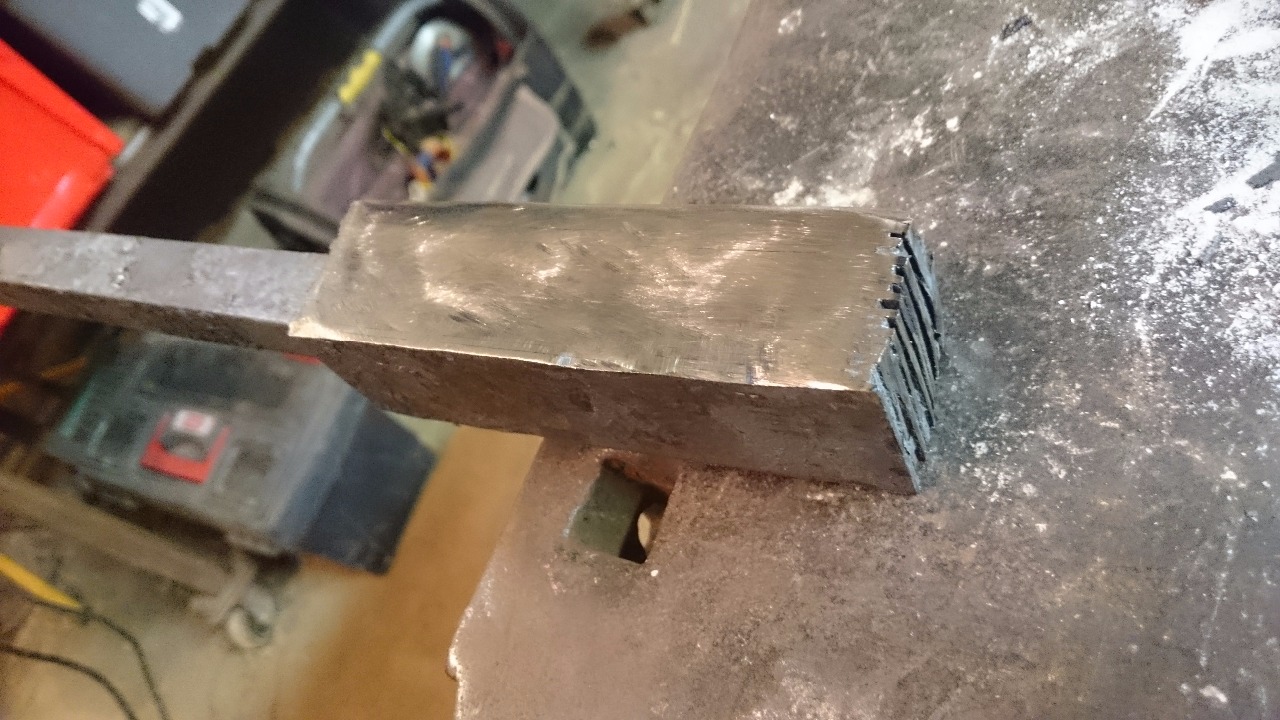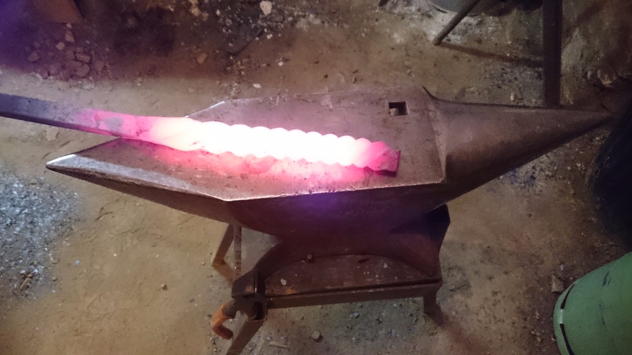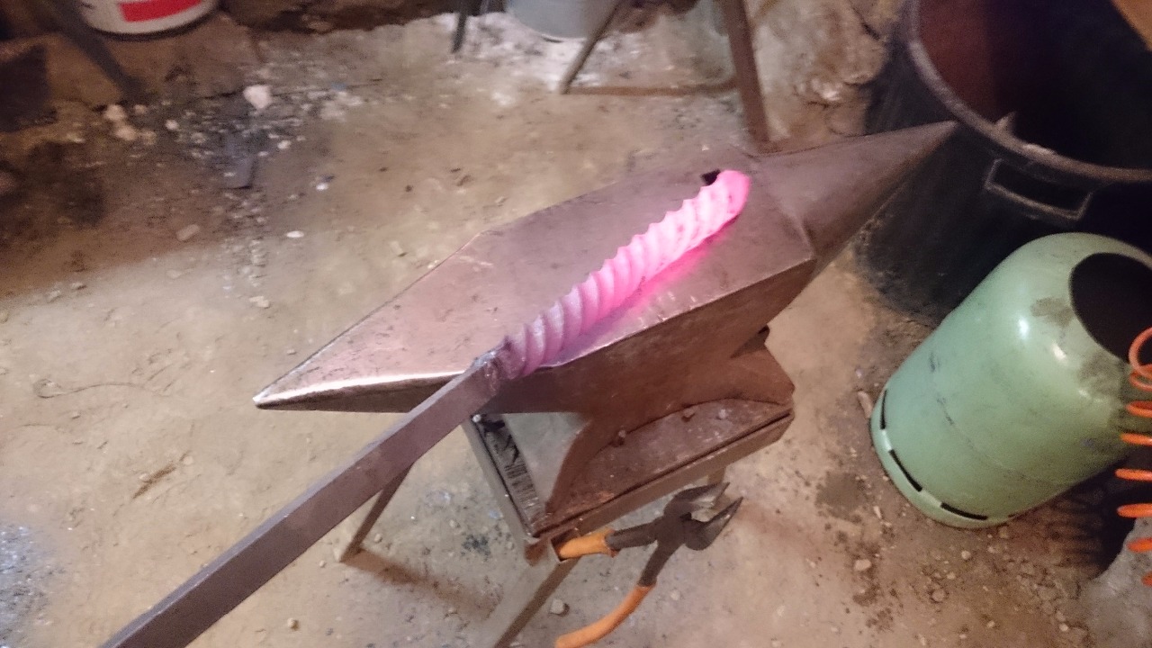 Il reste quelques soudures à assurer, je remets au feu pour les finir et commencer à étirer mon barreau: