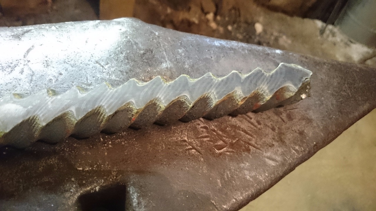 Bon, je reviensà mon Damas torsadé, mais cette fois avec de bon aciers adaptés.