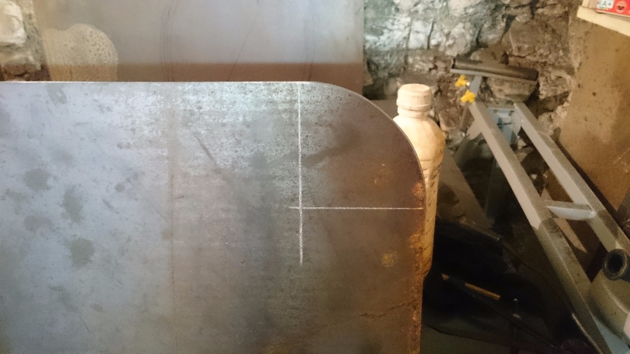 Voilà, la tôle est découpée. Un drap blanc derrière pour voir ce que ça donne