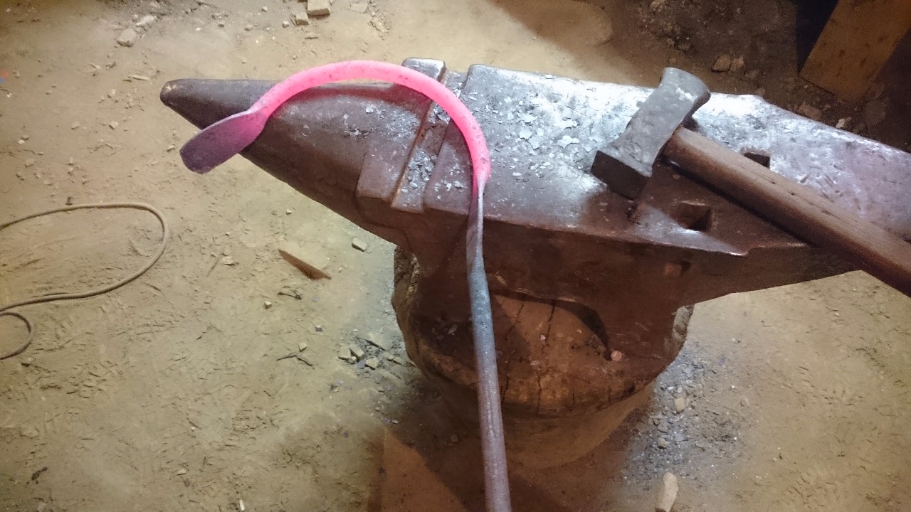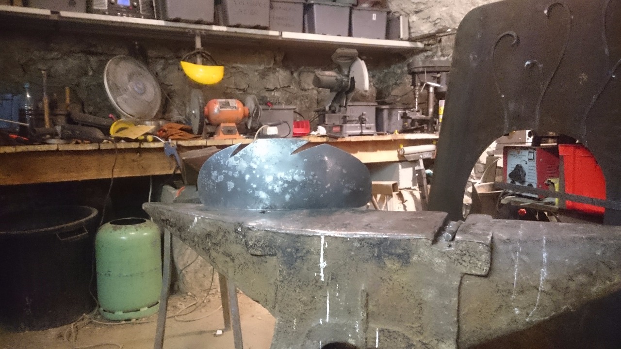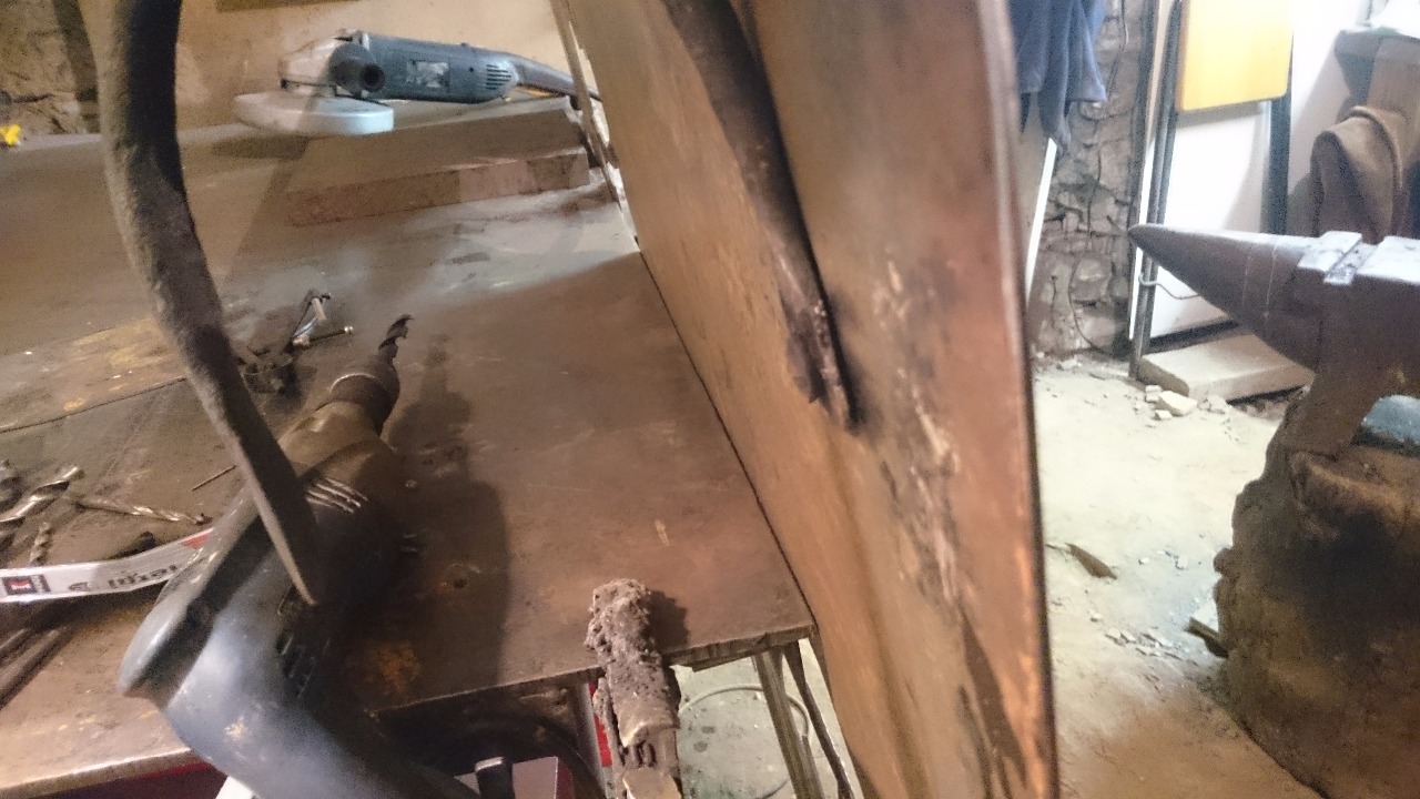 Maintenant je fais le pain qui sera placé au-dessus de la pelle. Je vais forger un peu la tôle afin de l'arrondir et lui donner de la profondeur, un peu de chaudronnerie!