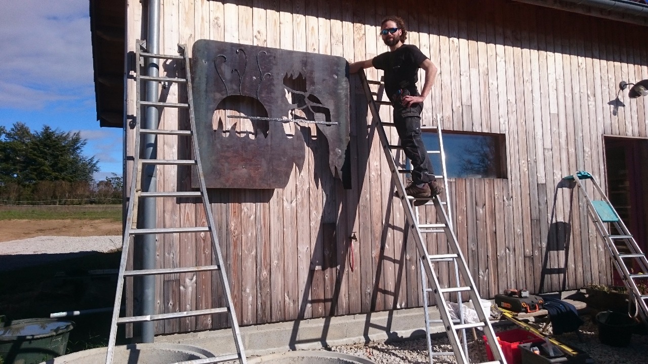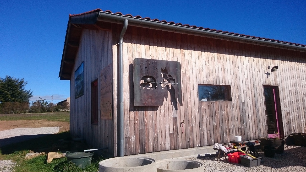 Avec l'aide de quelques gaillards assez costauds (c'est qu'elle doit peser dans les 50 kg!) on l'a posée dimanche sur la facade de la ferme de Géraldine, mon amie paysanne-boulangère à Quintenas (à coté d'Annonay, Ardèche du Nord)